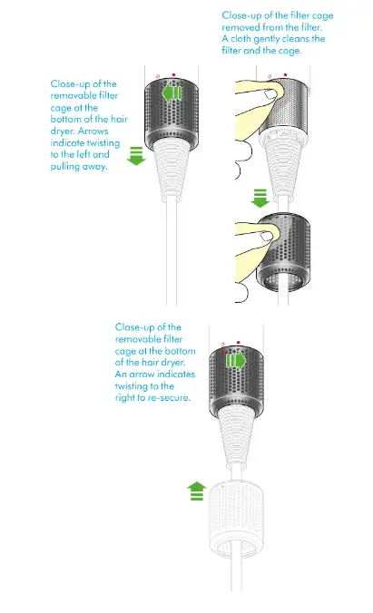 Unplug your machine from the mains electricity supply and allow it to cool down before cleaning your filter. The Dyson Supersonic Nural™ hair dryer has highly tuned technology to give outstanding performance. This technology needs to be kept free from debris and hair product residue. Regular maintenance is required to maintain performance.