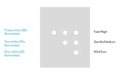 The airflow control button offers 3 precise settings: Fast/High, Gentle/Medium, Mild/Low. Adjust as needed by pressing the button on the back left-hand side of the cylindrical head.
