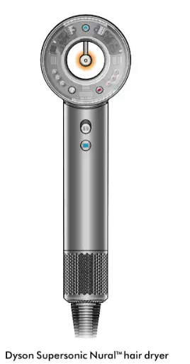 A network of Nural™ sensors helps the Dyson Supersonic Nural™ hair dryer enhance and optimise your hair care routine.