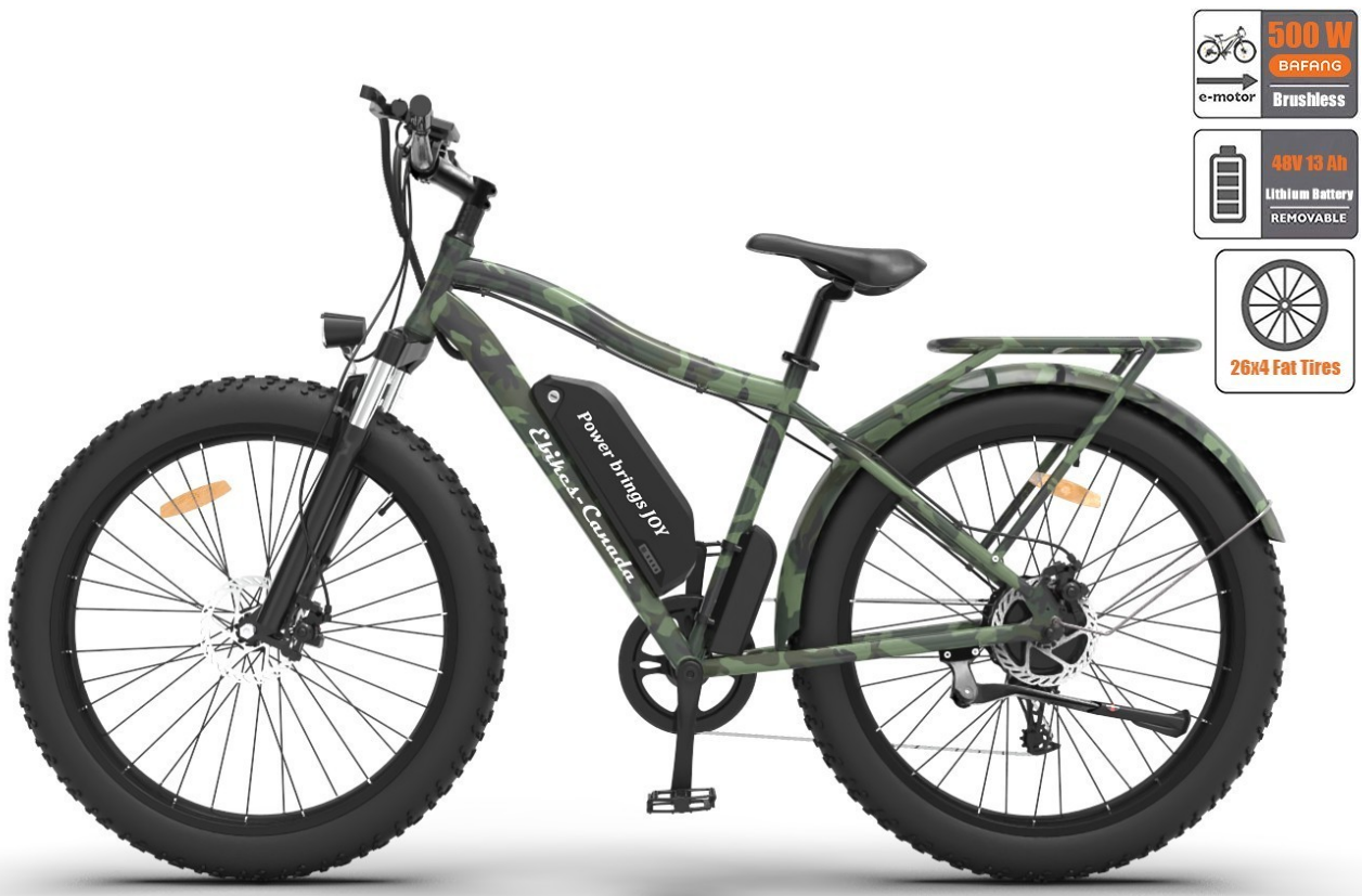 Users should check and follow their local regulations on peak power. It is normally 500 Watts peraxle in Canada with a top speed limit set to 32 Kph. Ebikes-Canada brand ebikes are all under 500 Watt per axle unless clearly stated in the product title and description. Our Ebike-Canada brand ebikes are programmed at the factory to be limited at 32 Km/h for use on Canadian public roads but can be unlocked via programming for off-road use ..