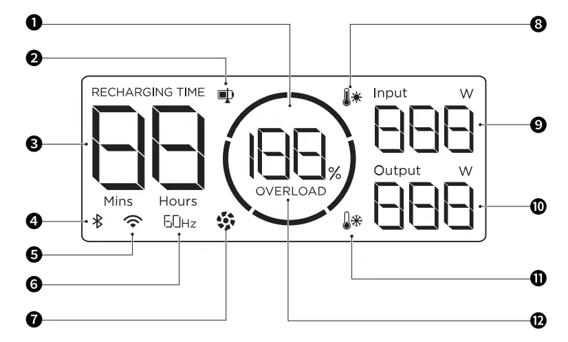 | OVERLOAD Flashing | USB-C or car charging output overload | Disconnect overloading devices and restart the product to resume normal operation. |