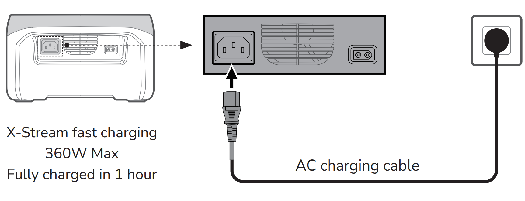 - For AC charging, we recommend that you use a power socket with a capacity of more than 10A and ensure that the working current of the socket is constantly greater than 10A.