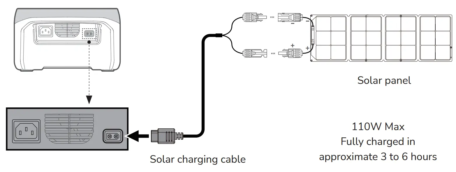 | Solar Charging Input | 11-30V 8A, 110W Max |