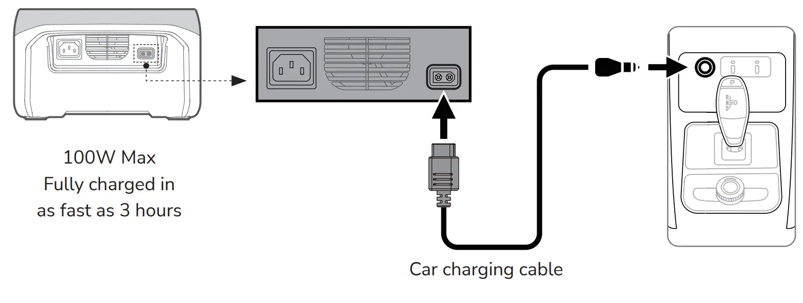 You can recharge the product through the car power outlet. The product supports 12V/24V car chargers and a maximum charging current of 8A.