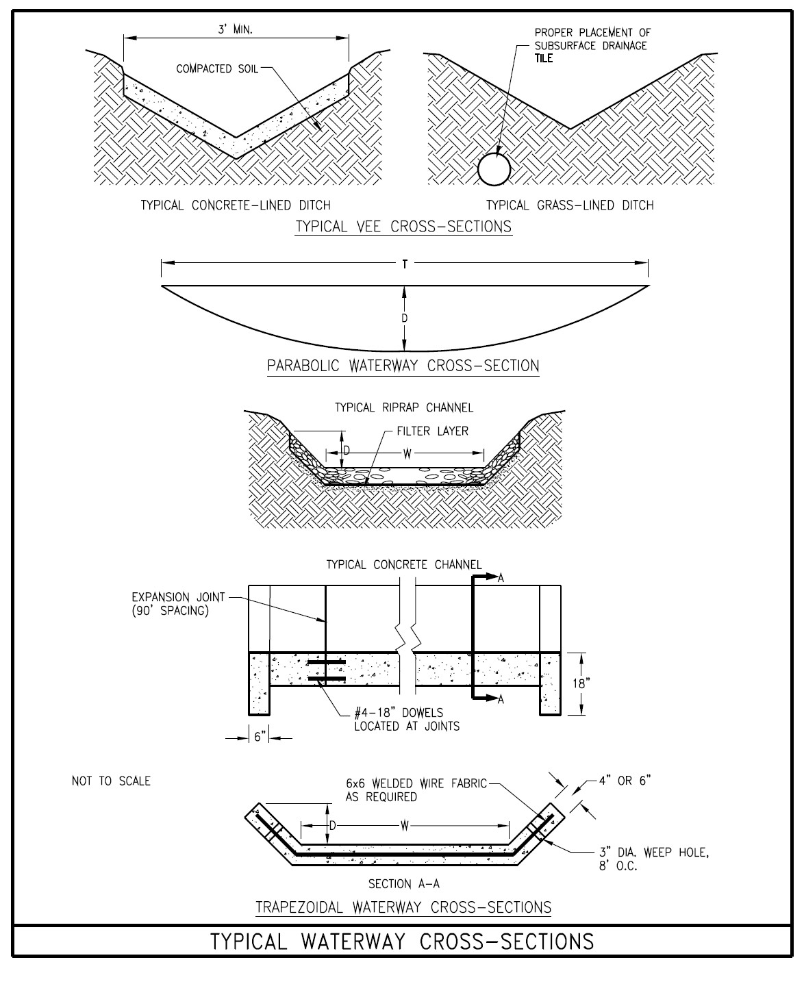 FIGURE 504-01: Typical Waterway Cross-Sections