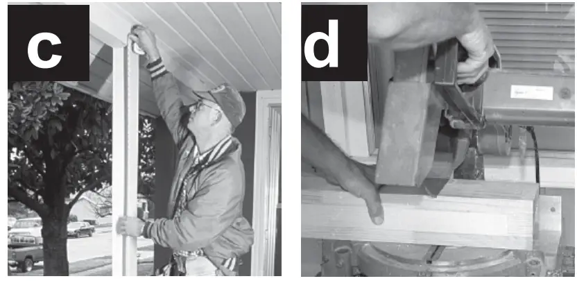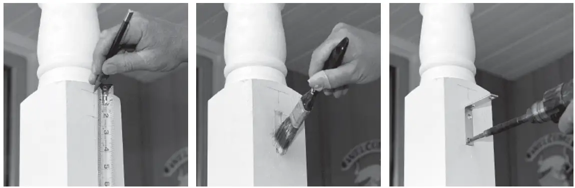 - Mark the location of column on beam [a] and platform, [b] then measure from beam to platform [c] for each column. If necessary, trim post to length (cut only the top). If trimmed, the top of the column must be primed again using high-quality acrylic primer.