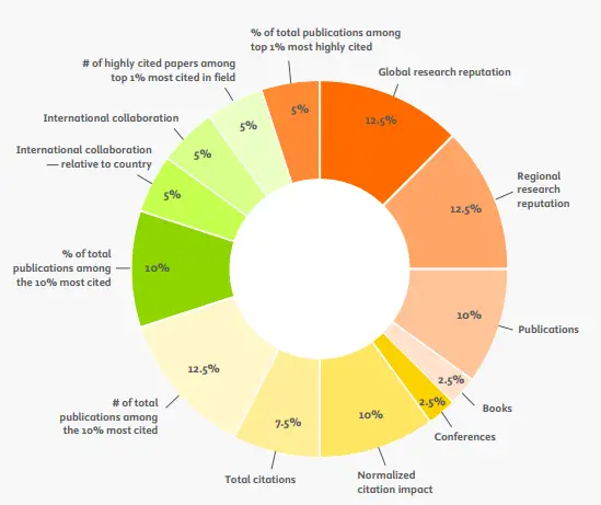 * For institutions specialized in humanities and social sciences such as London School of Economics, N&S is not considered, and the weight of N&S is relocated to other indicators.