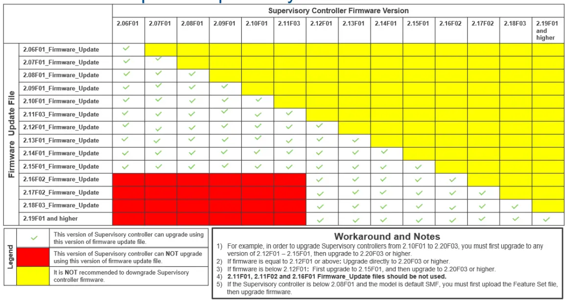All customers who use any of the features below are advised to upgrade to Supervisory controller 2.23F02, and customers using any of the features listed in Table 3.