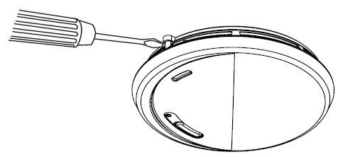 - After 10 years of operation or a Low Battery warning, deactivate the Alarm: Insert a tool below the edge where shown and break the tab. Then slide the activation switch to deactivate mode.