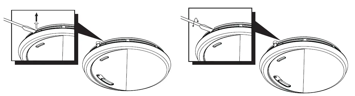 The optional locking feature is designed to prevent the unauthorized removal of the alarm. It is not necessary to activate the lock in single-family households where unauthorized alarm removal is not a concern. Tools you will need: Needle-nose pliers or utility knife Standard flathead screwdriver The feature uses a locking pin that is molded into the mounting bracket. Remove the locking pin by using needle-nose pliers or a utility knife. To permanently remove the locking pin, insert a flathead screwdriver between the locking pin and the lock and pry the pin out of the lock.