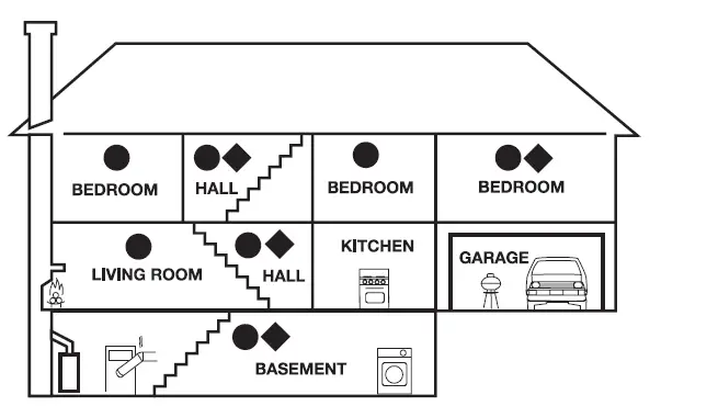 Suggested locations are based on NFPA recommendations (NFPA 72 for Smoke Alarms and NFPA 720 for Carbon Monoxide Alarms). Always refer to national and local codes before beginning any installation