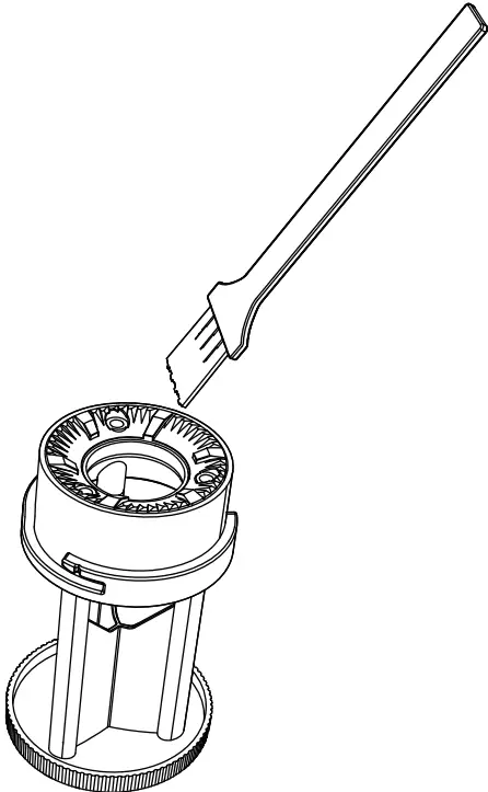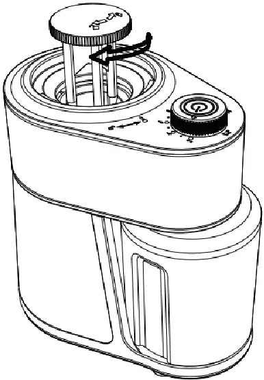 3. Securely attach the Container and Container Lid into the Motor Housing. NOTE: The Container have a capacity of 95g. *Do not fill the ground coffee beyond the max line of the Container.