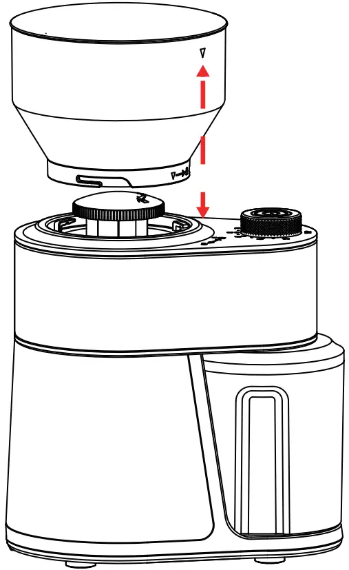 NOTE: The Hopper have a capacity of 250g. *Do not fill the coffee grinder beyond the brim of the Hopper.