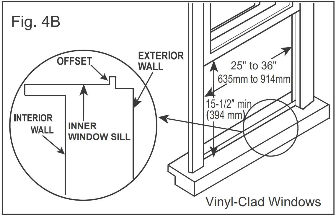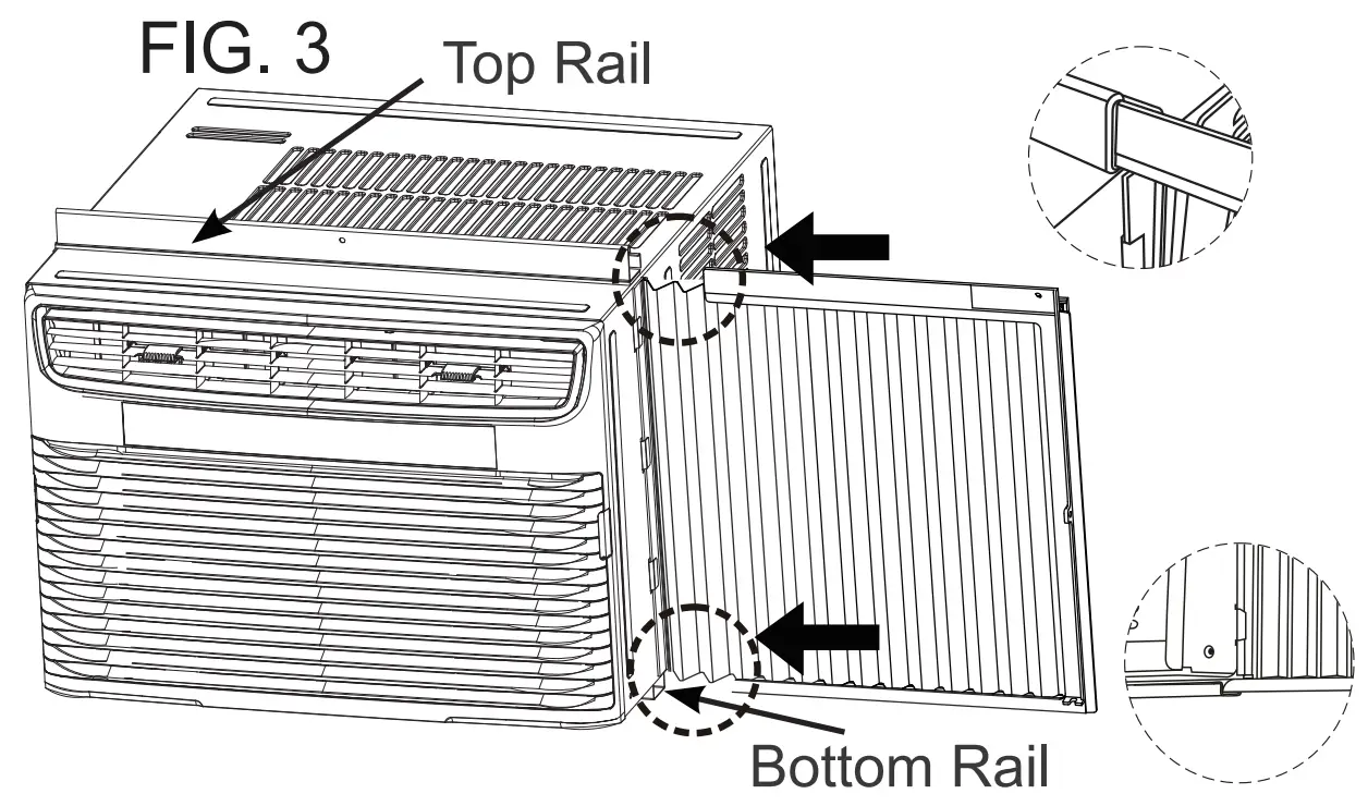 Your air conditioner is designed to install in standard double hung windows with opening widths of 25 to 36 inches (635mm to 914 mm) (FIG. 4A & FIG. 4B)