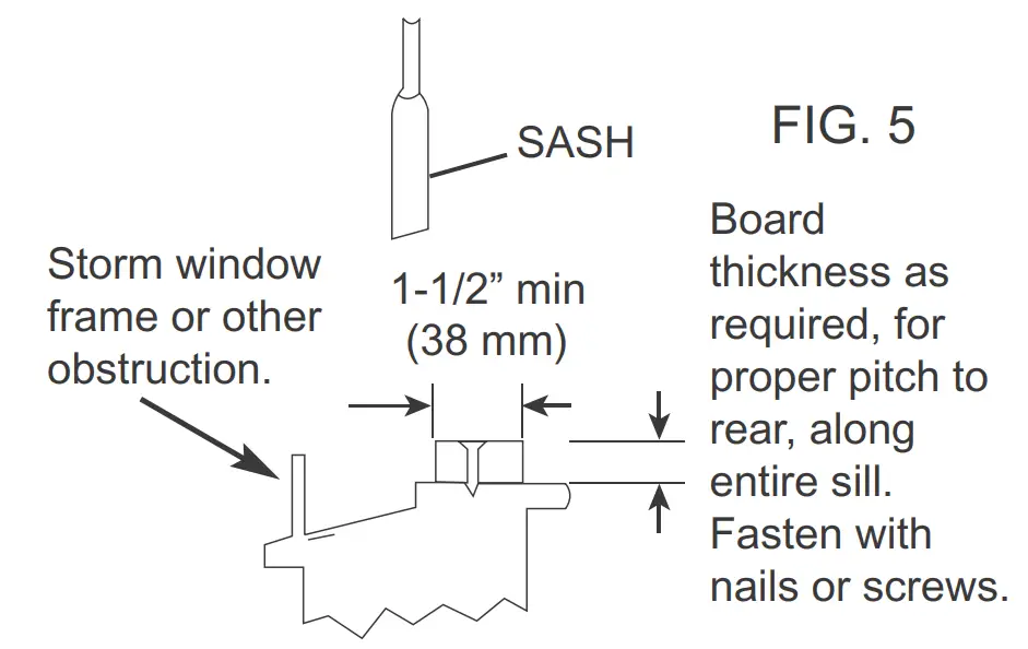 If the air conditoner is blocked by Storm Window, add wood as shown in FIG. 5, or remove storm window before air conditioner is installed.