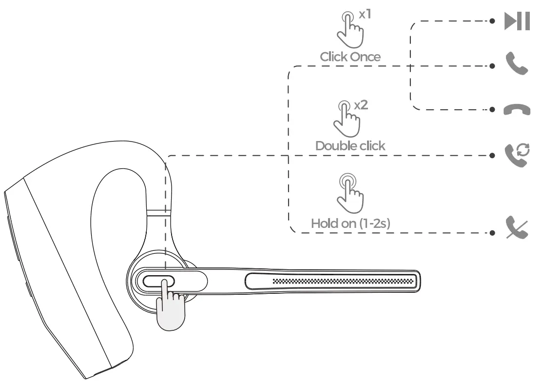 Play/ Pause/ Answer/ Hang Up/ Redail /Reject/ Siri / Mute