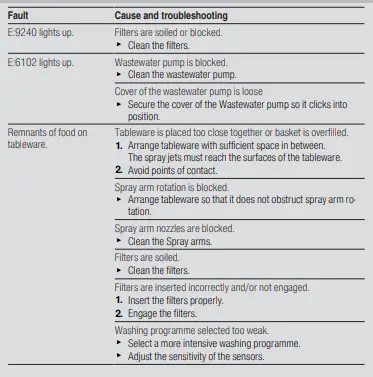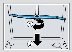 3. Check the outlet nozzles on the spray arms for blockages under running water and remove any foreign bodies.