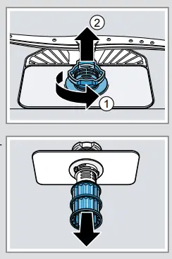 5. Insert the upper spray arm and screw it firmly in plac