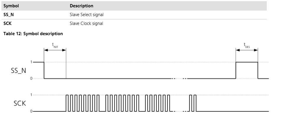 In order to avoid a faulty usage of the SPI, the user needs to comply with certain timing conditions. The following signals need to be considered for timing constraints:3.4 Timing recommendations
