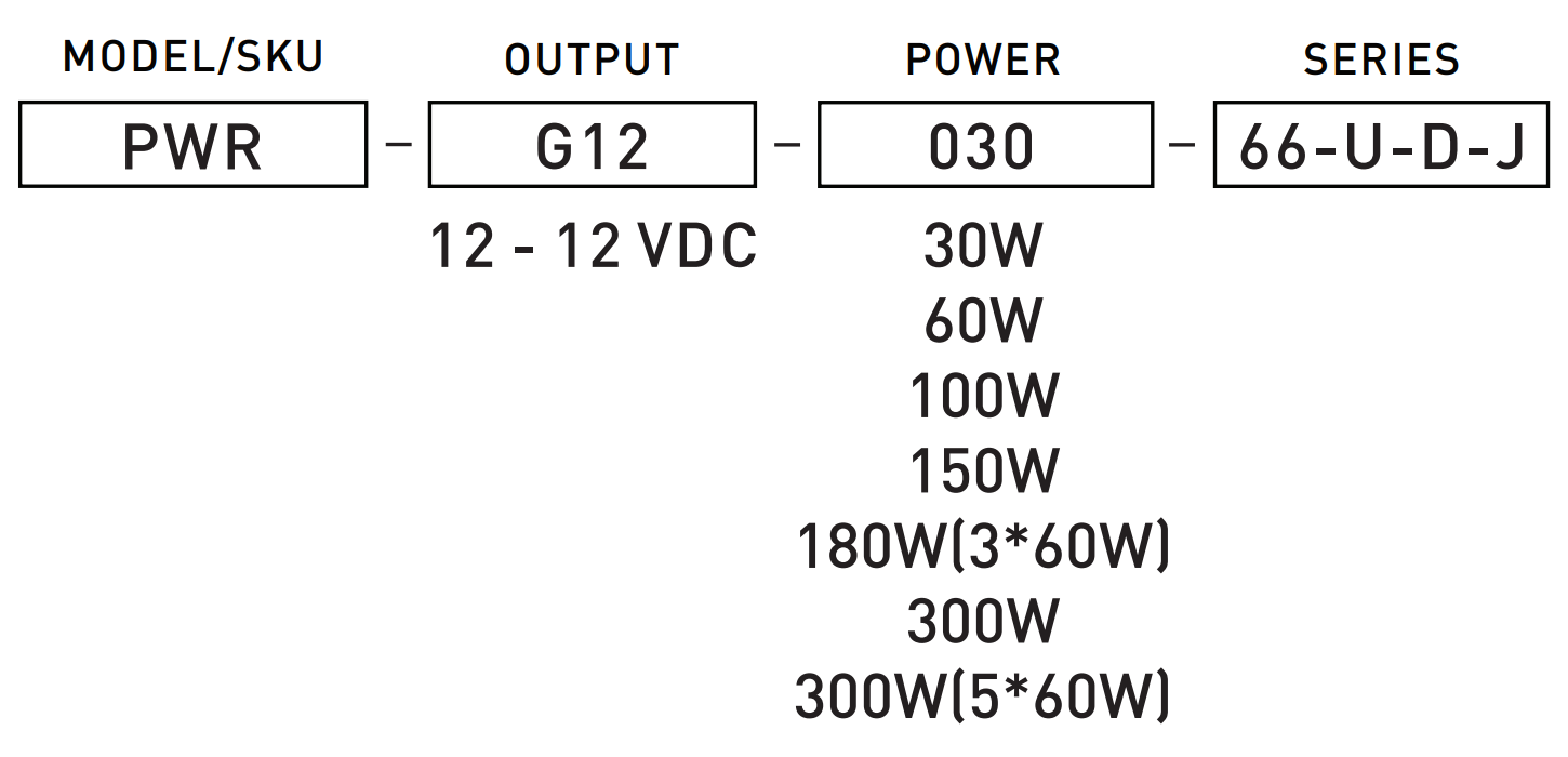 | PWR G12V 300 66-U D-J | 100 277VAC@50/60Hz | 20A, 50%, 1.9ms | 0.99@120VAC 0.97@277VAC | 0.86@120VAC 0.88@277VAC | 3.4A@100VAC | 300Wmax | 12.5A | 12V DC | 10.95 | 4.33 | 1.77 | 4.8 lbs | -22~140℉ |