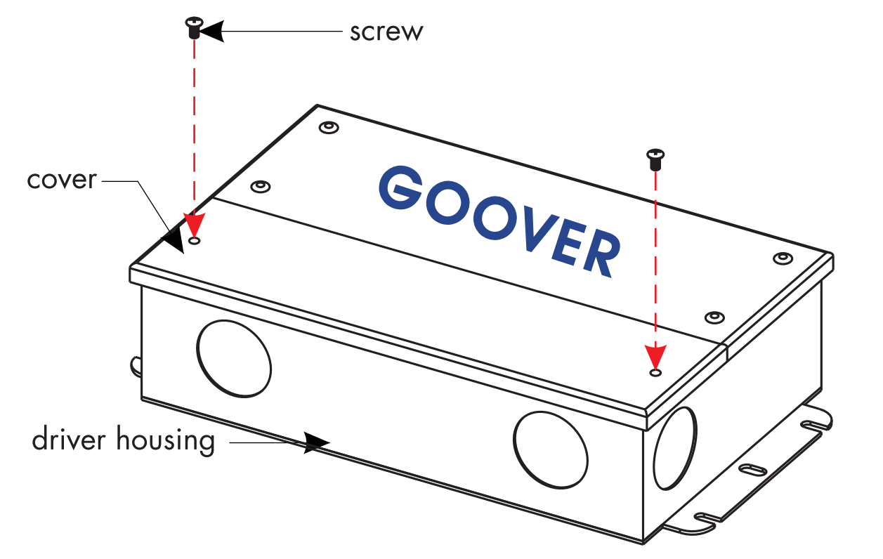 - Remove the two Phillips screws from the top of the driver housing and pull the cover off to expose the driver wires.