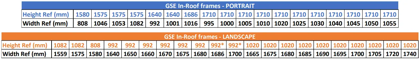 | Frames 2020 | Needed cut | No cut needed | Waterproofing strip* |