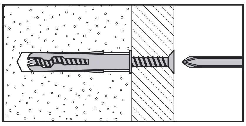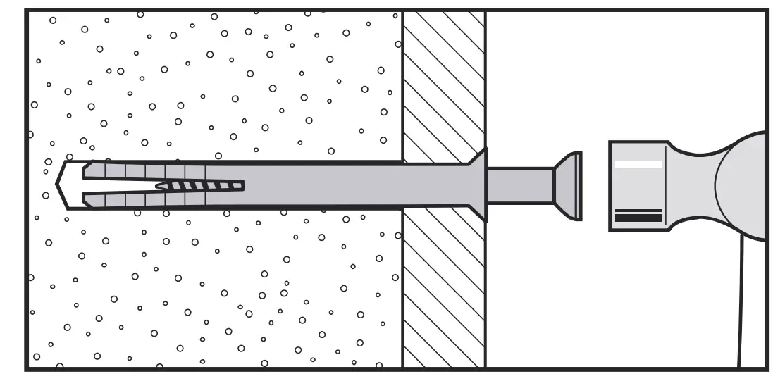 - Ensure wall plugs are well fitted and are a tight fit in the drilled hole.