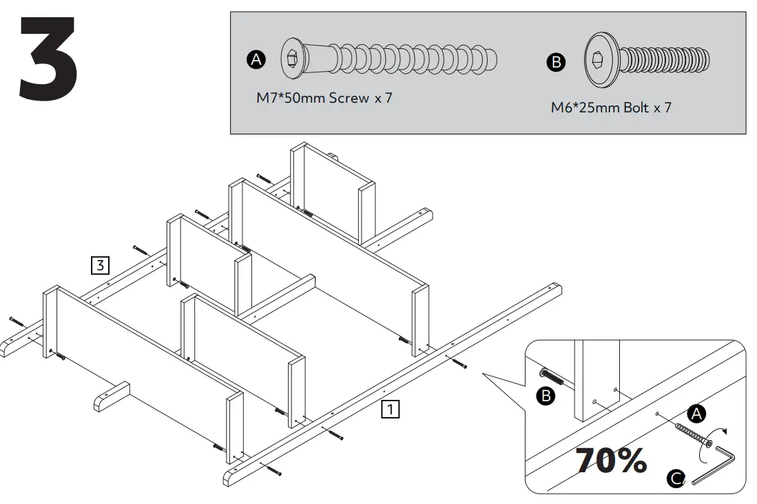 - Assemble all parts and bolts loosely during assembly, only once the product is complete should you