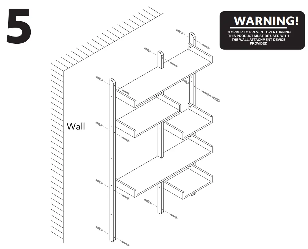 - A unit that is allowed to topple can cause serious or fatal injury. In addition to wall fixing the unit, place heavy items on the lower shelves. do not put any heavy objects on top of the unit and never allow children to climb or hang on drawers,doors or shelves