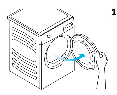 - Ensure a location which allows opening the door fully. Do not install the tumble dryer behind a lockable door,