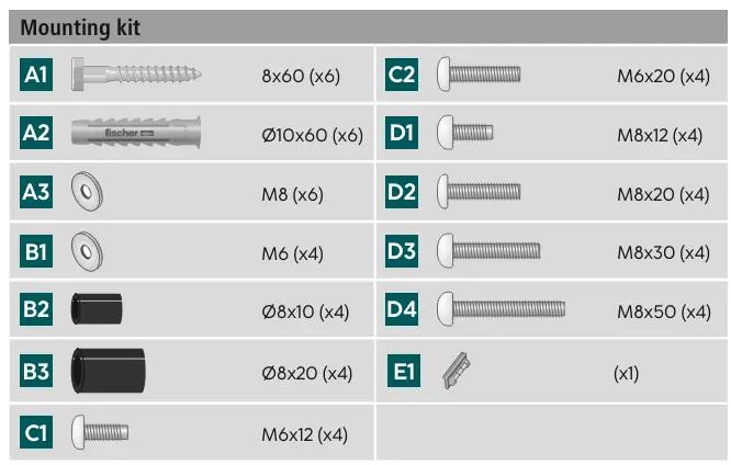 - Given the multitude of terminal devices and wall structures available on the market, the supplied mounting kit is unable to cover every