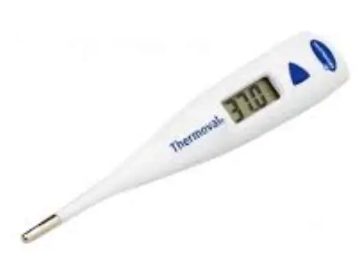 The best way to clean the thermometer tip is by applying disinfectant (e.g. 70 % ethyl alcohol) with a damp cloth. Thermoval rapid/kids/kids flex is guaranteed waterproof and can therefore be immersed in liquid or lukewarm water for thorough cleaning and disinfection.