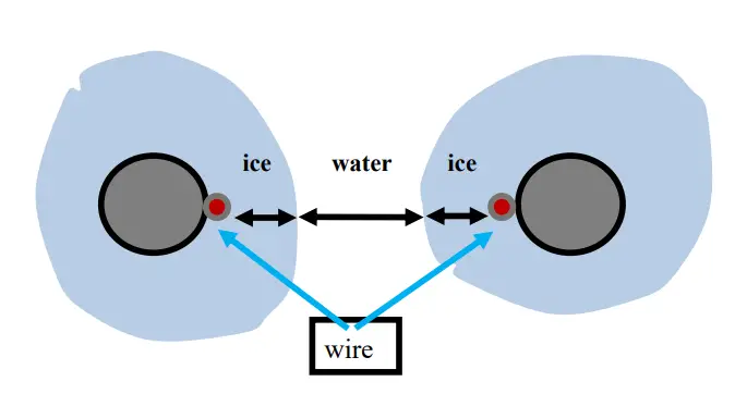 - The box is mounted on the ice bank with the two wires going into the water and being attached topipes or tubes where the ice is formed. The wires must be mounted with a distance between 30 and 100 mm and the active length must be at least 1 m long. The accuracy is increased with longer wires. The signal will be an average over the total length.