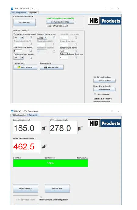 To get started you need to adjust two figures the “zero calibration in pF” and “span calibration in pF” and make sure the configuration is right The procedure is the following: