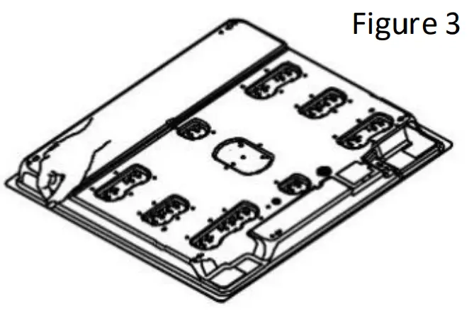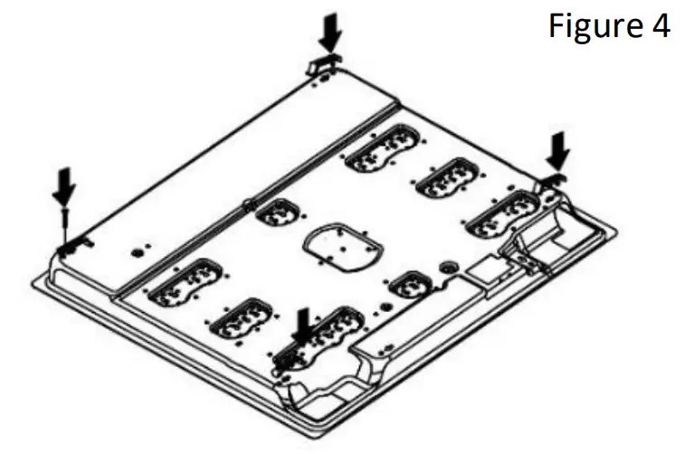 The range is equipped with a seal to prevent the liquids through the cavities into the cabinet. In order to place this seal, adhere the seal as shown in the figures above. Turn the range upside down and remove the protective tape of the rubber seal and adhere it to the range; both ends of the seal should meet each other. Install the mounting sheets as shown in figure 5 by help of screw. And place the range in the opening on the counter.