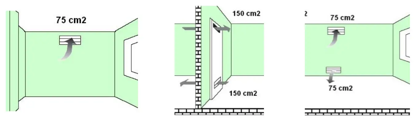 Air vent should be near the kitchen floor and minimum75cm², opening to the outer atmosphere