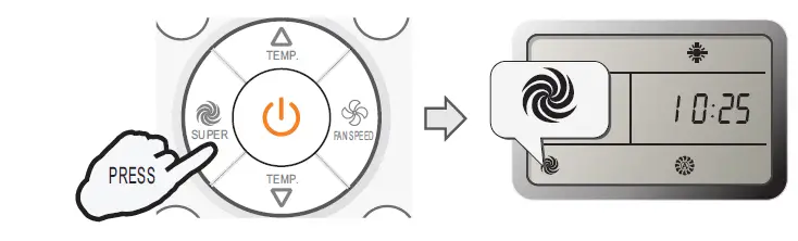 The SUPER mode can be set when the appliance is in operation or energized. In SUPER mode, you can set airflow direction or timer.