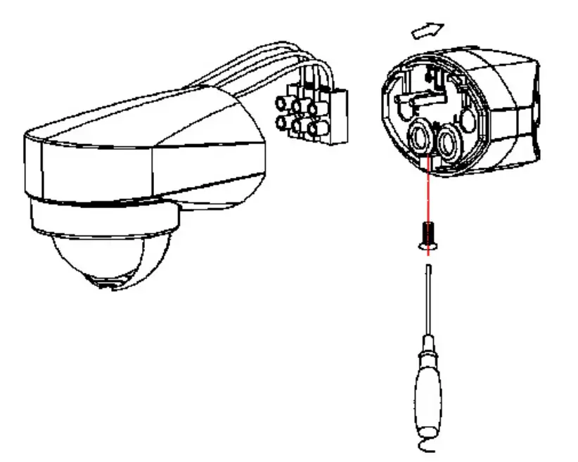 (img.1). Unscrew the screw below the detection window and unload the bottom (img.2). Also unscrew the two screws at the bottom and unload the bottom into two parts. (img.3) - Find the wire hole at the bottom and pass the power wire through the hole. Connect the power with the connection-wire column according to the Connection-wire Diagram.