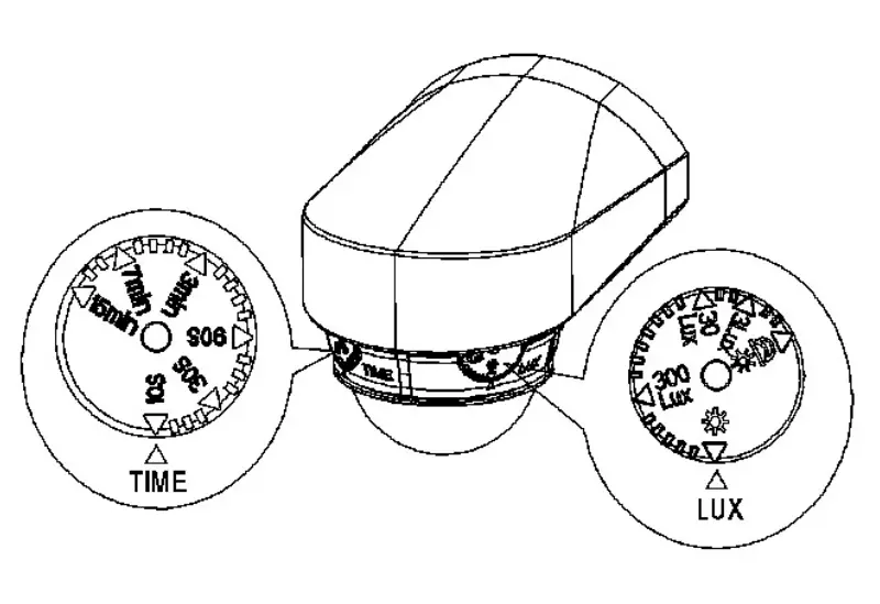 - Turn the TIME knob anti-clockwise on the minimum (10s). Turn the LUX knob clockwise on the maximum (sun).