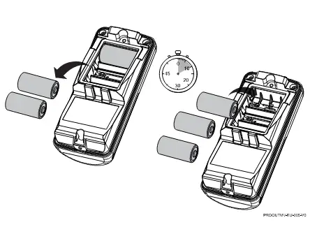 The detector is powered by three Lithium batteries. To maximize battery efficiency, it is important to remove all of the old batteries, wait approximately 10 seconds, and then install new batteries.