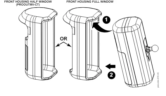 NOTE: See the Installation of the Full or Half Window (PROOUTMV-CT) Housing section for instructions.