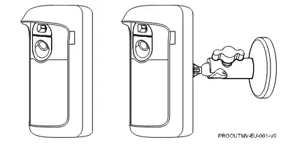 | The detector can be mounted directly on a wall or with a PROOUTMV-MB mounting bracket (available separately). |