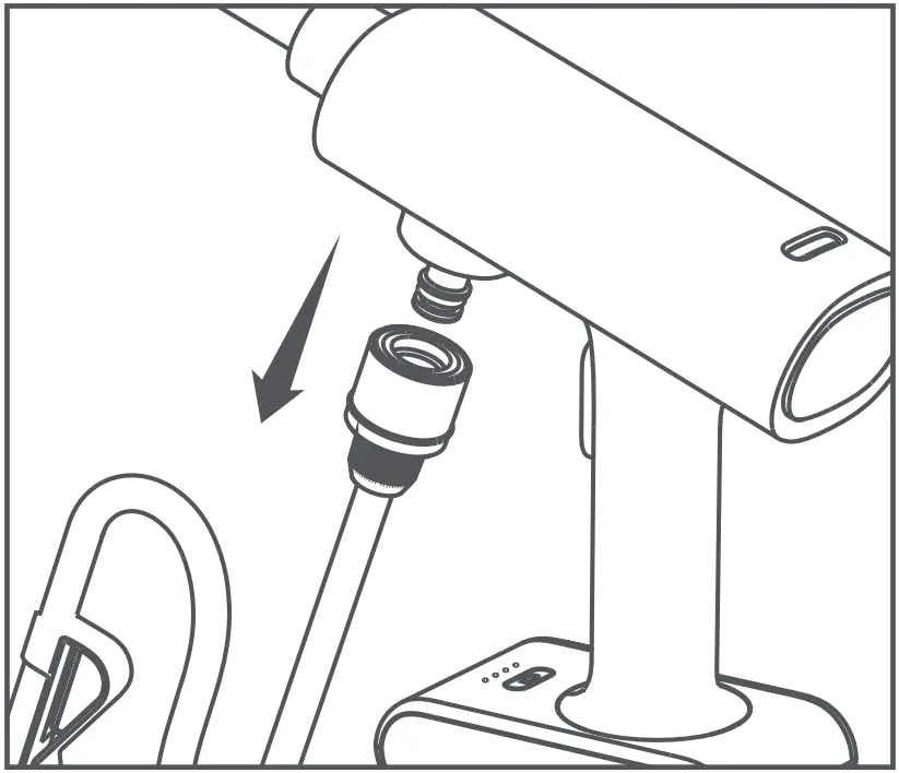 - Rotate the gun 90 degrees in the arrow direction so that spray lance restores.