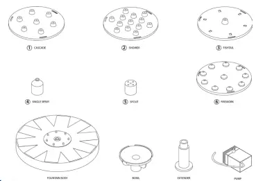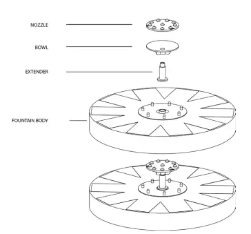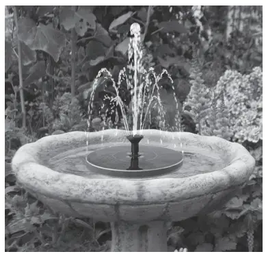 Place the fully charged fountain in water to activate spray action. If the water spraying is not smooth, take off the nozzle to release built-up air in the pump.