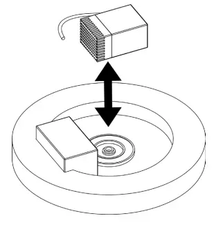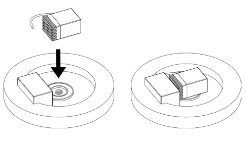 Flip fountain body so the solar panels are facing down and con- nect the pump nozzle into the socket in the center of the disc if not already connected.