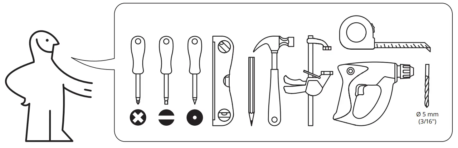 Screw(s) and plug(s) for the wall are not included. Use screw(s) and plug(s) suitable for your walls. If you are uncertain, seek professional advice. Read and follow each step of the instruction carefully.