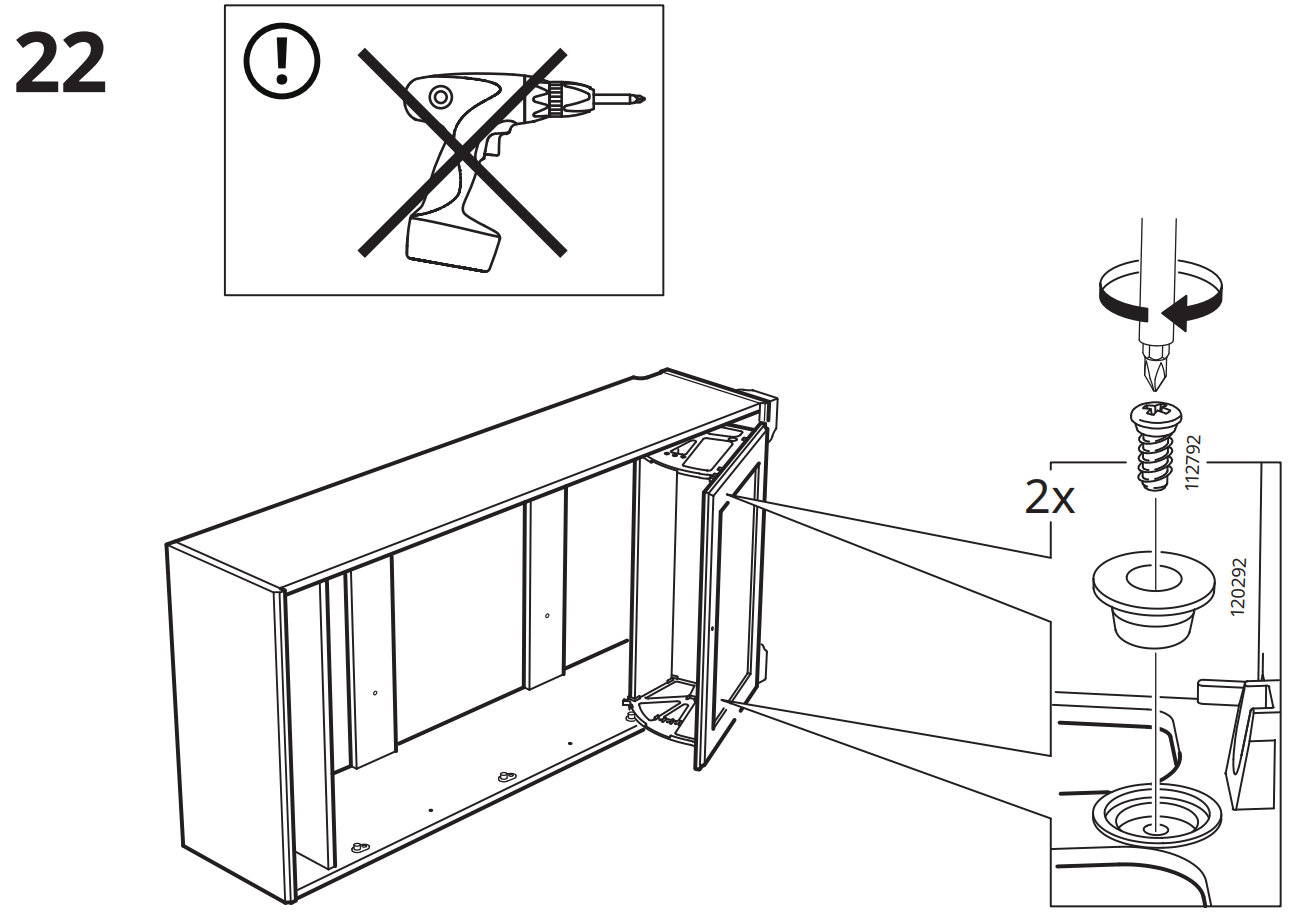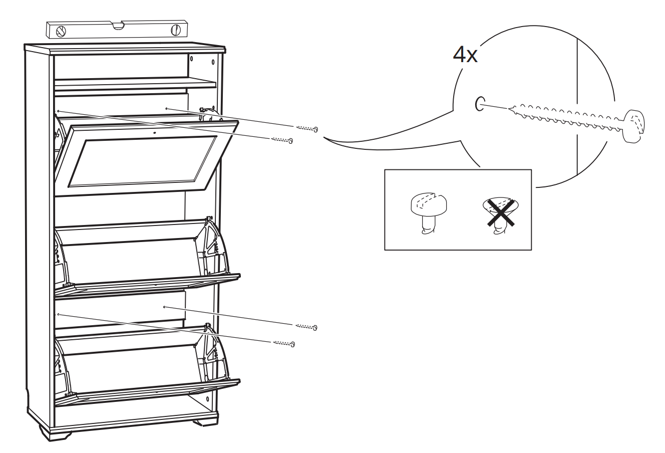Screw(s) and plug(s) for the wall are not included. Use screw(s) and plug(s) suitable for your walls. If you are uncertain, seek professional advice. Read and follow each step of the instruction carefully.