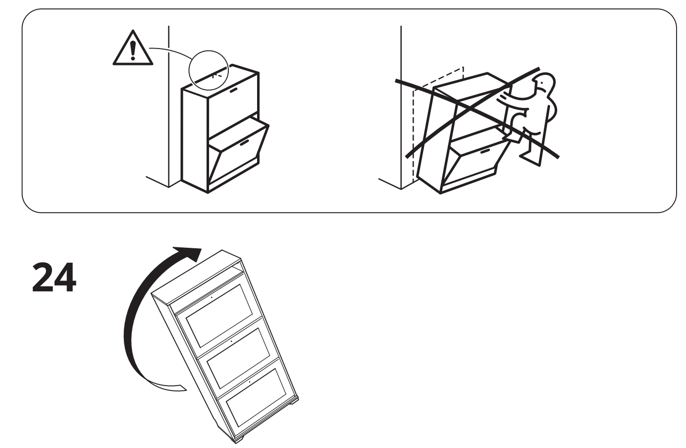 Serious or fatal crushing injuries can occur from furniture tip over. To prevent tip over this furniture must be used with the wall attachment device(s) provided.