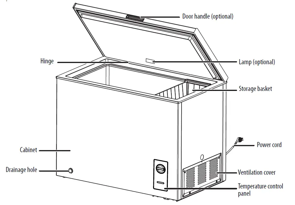 - Remove any packaging materials and clean the interior of the freezer before use.