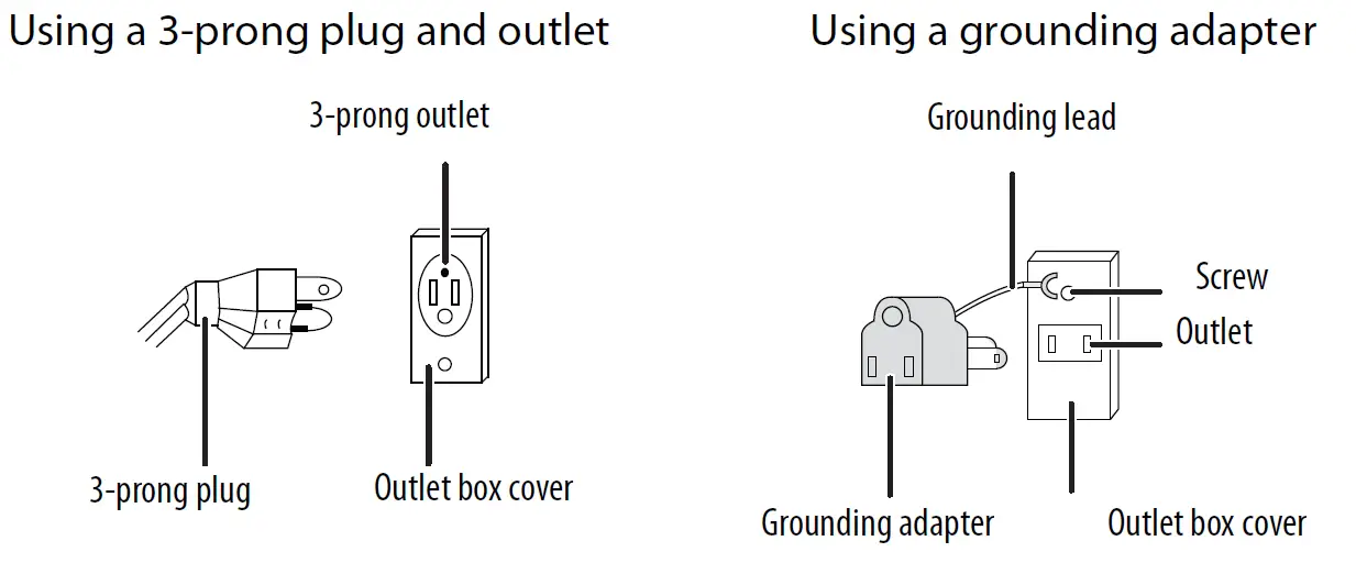 - Do not use extension cords or ungrounded (two prong) adapters.